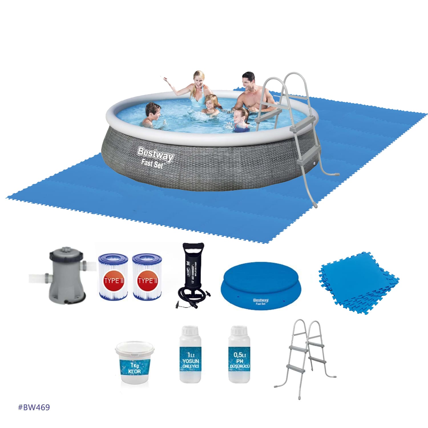 Büyük Şişme Havuz Seti BW533 57376 ürünümüz ile ilgili tüm yedek parça ve ekipmanlar, Bestway şişme havuz, prefabrik havuz, şişme yatak ve şişme jakuzi ürünleri için malzemeler Feyza Outdoor güvencesiyle satışa sunulmaktadır.